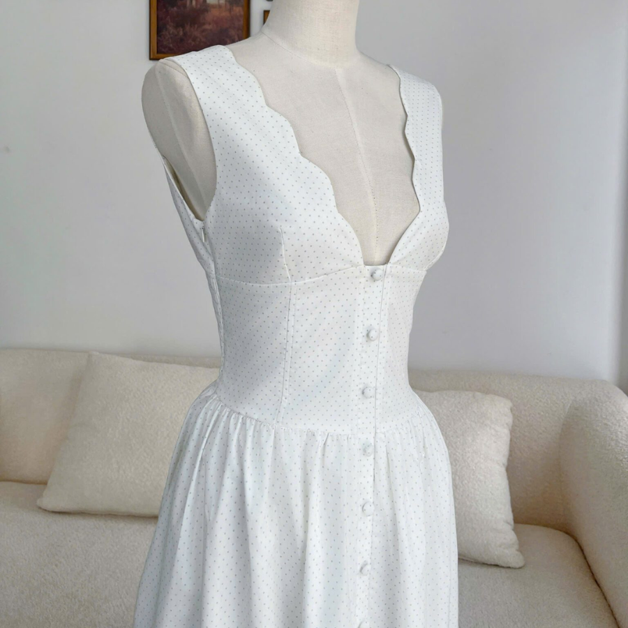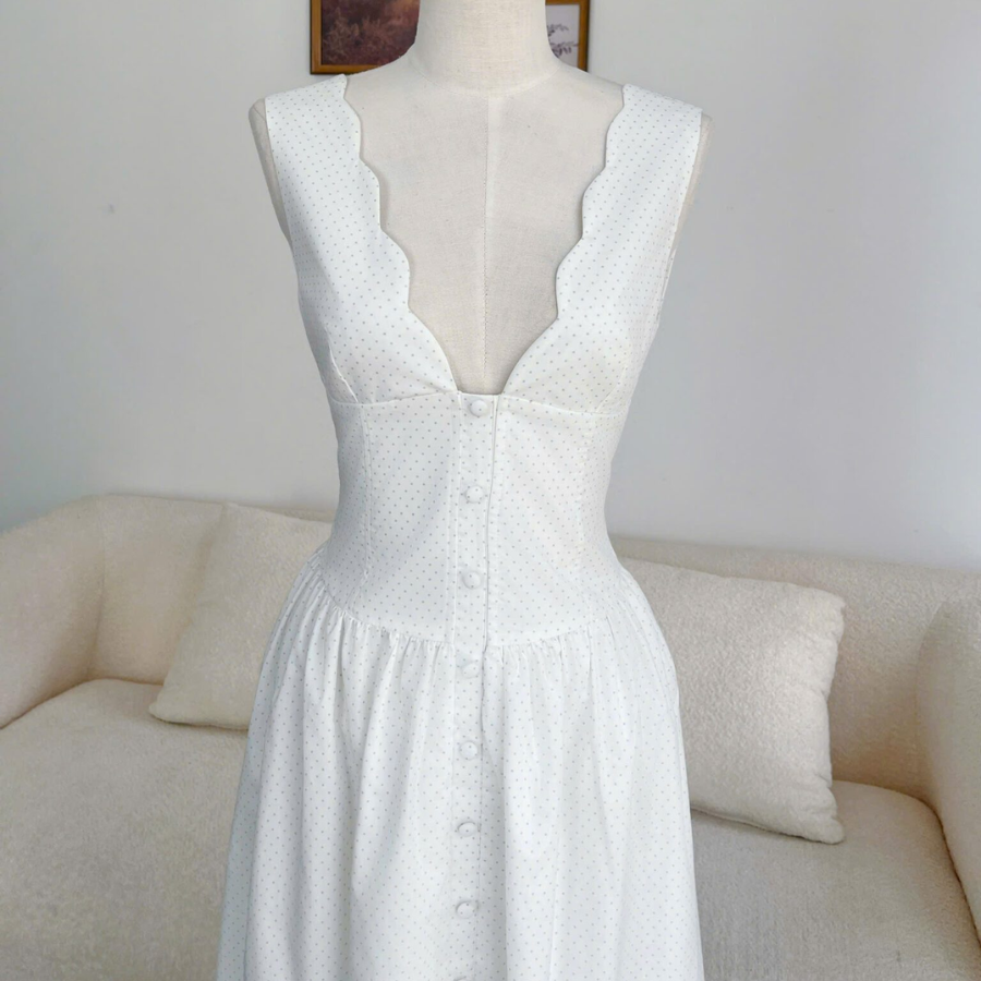 - Name: Gloria Dress – Grey Polka Dot